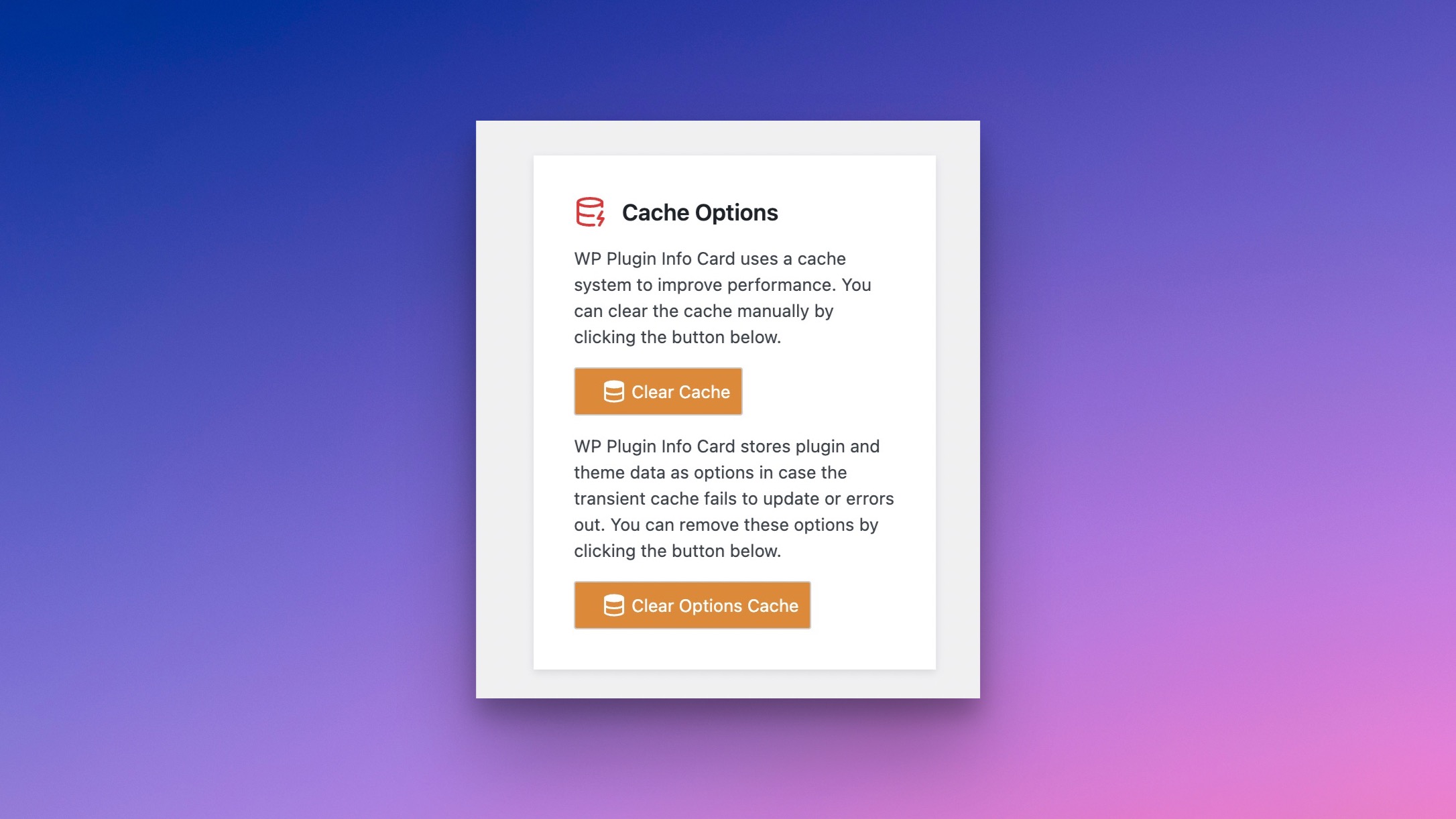 <figure><img src="https://2501776759-files.gitbook.io/~/files/v0/b/gitbook-x-prod.appspot.com/o/spaces%2FpnYS3YtcHzoazndRXC9y%2Fuploads%2FIqePpXjgJ4asgmyEC4Cl%2Fdlx-2024L7HYHLLd%402x.jpg?alt=media&#x26;token=fe843e59-bcf4-4630-a6b2-9b6115782233" alt=""><figcaption><p>Cache Clearing Options on Plugin Info Card</p></figcaption></figure>